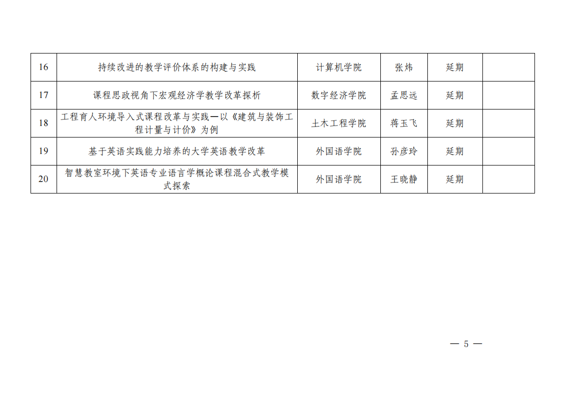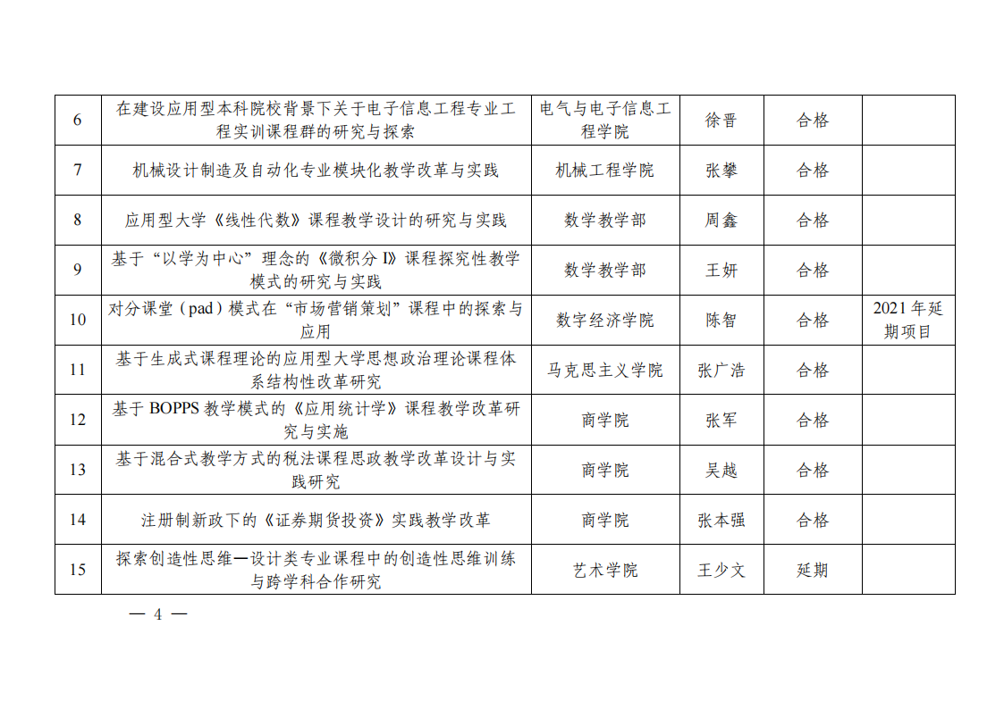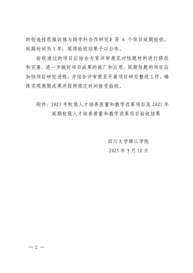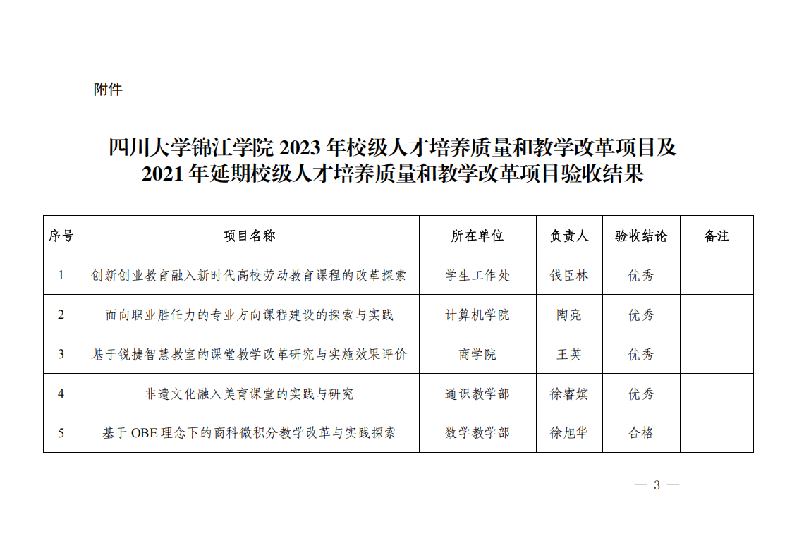 关于公布2023年校级人才培养质量和教学改革项目及2021年延期校级人才培养质量和教学改革项目验收结果的通知
